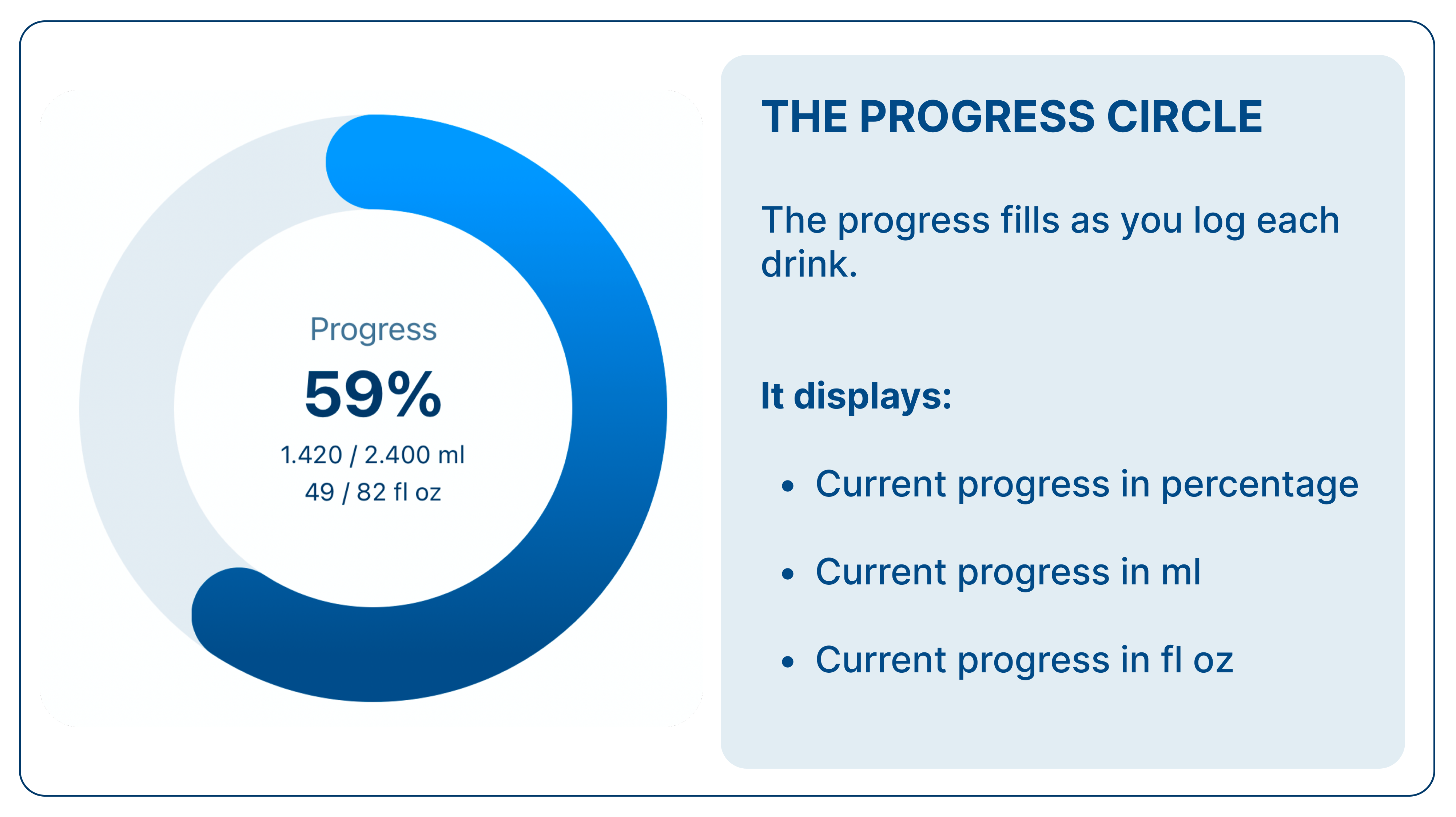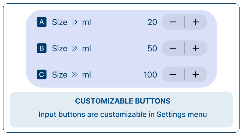 BlueLio lets you create customizable buttons for your common drink amounts, making logging water quick and easy. Simply tap your preferred button to add to your daily total, ensuring accurate tracking and saving time.